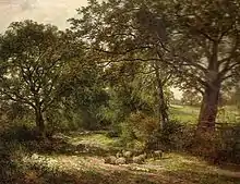 Payne became a rural landscape and trompe-l'œil artist.[1] He exhibited at the Royal Birmingham Society of Artists (R BSA), the Nottingham Museum and Art Gallery, and was a member of the Royal Scottish Academy (RSA). He is regarded as one of the best of the 19th-century Birmingham artists. In 1891, Queen Victoria visited Derby to lay the foundation stone of the Derbyshire Royal Infirmary and to knight Sir Alfred Haslam.[4] The scene in the market place where hundreds of people, soldiers, horses and bunting turned out to meet Queen Victoria was captured by Payne.[4] This painting is now in Derby Museum and Art Gallery, but he also has work in his home town.[1]