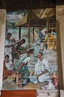 David Shillingford Paynter, RA, OBE (5 March 1900 – 7 June 1975), was an internationally renowned Sri Lankan painter.[2] He was a pioneer creator of a Sri Lankan idiom in what was essentially a Western art form. His most celebrated works are his murals at the Trinity College Chapel in Kandy and the Chapel of the Transfiguration, at S. Thomas' College, Mount Lavinia. The Sri Lanka Philatelic Bureau commemorated Christmas in 1996 with two stamps featuring the murals from the Trinity Chapel.[3]