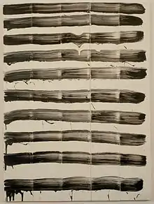 David Reed is known as a colorist and for creating long, narrow abstract paintings on canvas that are hung either lengthwise or vertically and feature several images resembling enlarged photographs of swirling brushstrokes juxtaposed in a single painting.[2] Reed's paintings are engaged in a crossover between film, the electronic media and everyday culture. Besides being a fine arts painter, he is also an installation sculptor,[3] a video artist,[4] a lecturer on contemporary art and art history, and an exhibition curator.[5] He has a fondness for the art from the Baroque and works by Degas and Delacroix.[3]