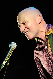 David Rhodes was born on 2 May 1956 in London. He studied Art at Central Saint Martins and then went on to complete a degree in Sculpture at Goldsmiths, University of London, where he developed an interest in music.[1] Shortly after graduation, he began recording and was a founding member of the rock band Random Hold, in which he performed vocals and lead guitar. He was soon asked to play with Peter Gabriel. His first appearance was on 1980's Peter Gabriel (also referred to as Melt), Gabriel's third studio album.[2] Rhodes has been the principal studio and touring guitarist for Gabriel since then.[3]
