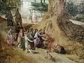 David specialized in elegant figures in park-like landscapes (Outdoor Merry Company, 1610; Vienna, Akademie der Bildenden Künste) as well as Kermis and other village festivals. He also produced Biblical scenes such as Tobias and the Angel (1619, Olana State Historic Site).[1] His landscapes reflect his contact with Gillis van Coninxloo. Vinckboons attracted a number of students; among them were Gillis d'Hondecoeter, Claes Janszoon Visscher and probably Esaias van de Velde.
