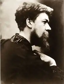 Many of Wynfield's photographs portrayed members of the St. John's Wood Clique and their friends in fancy dress. The combination of soft focus, close-up, large-format print and historical costumes produced a photographic style that was completely original at the time.[3] Wynfield was attempting to imitate the painterly effects of old master artists such as Titian, using the new medium.[4] A selection of the photographs was published in 1864 as a book entitled The Studio: A Collection of Photographic Portraits of Living Artists, Taken in the Style of Old Masters, by an Amateur.