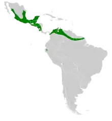 These bats are found most commonly in moist habitats that sustain a high volume of insects. Nighttime roosts of these animals are most commonly found in warm, dark, moist caves. P. davyi are found as far north as Mexico and as far south as South America and Honduras.[3] They typically prefer low elevations, but some individuals have been observed at elevations as high as 2,000 meters above sea level.[3] There has been no recorded observance of this species in Guyana, Suriname, or French Guiana.[3] Studies of this species have revealed genetic divergence between the Southeastern P. davyi population, and the Pacific and Gulf Coast populations.[7] This is believed to be a result of geographical barriers that separate these populations. These geographical barriers are Sierra Madre Occidental, Sierra Madre Oriental, and Sierra Madre del Sur.[7]