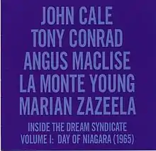 Inside the Dream Syndicate, Vol. I: Day of Niagara or simply Day of Niagara is a bootleg recording of a 1965 performance by the minimalist music group the Theatre of Eternal Music, a.k.a. the Dream Syndicate. Contributors include future Velvet Underground members John Cale and Angus Maclise, composers La Monte Young and Tony Conrad, and artist Marian Zazeela. It received a release in 2000 by the label Table of the Elements against the wishes of Young.