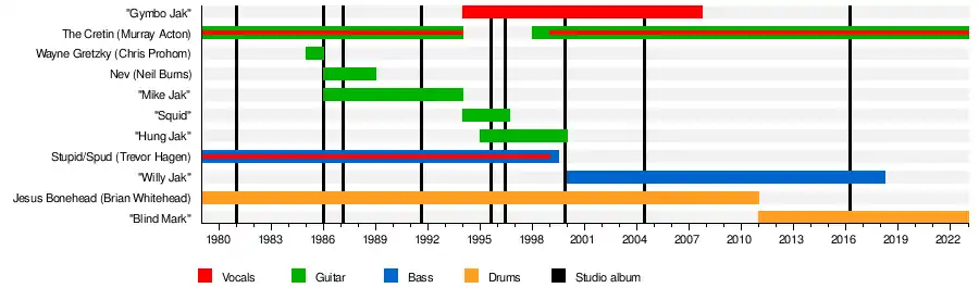 - Murray Acton "The Cretin", lead guitar and vocals, 1979–1994, 1998–present