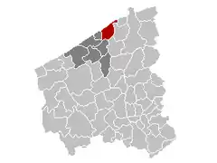 De Haan (French: Le Coq; West Flemish: D'n Oane; English: The Rooster) is a place and a municipality located in the Belgian province of West Flanders. The municipality comprises the villages of De Haan proper, Wenduine, Klemskerke, Vlissegem and Harendijk. On January 1, 2020 De Haan had a total population of 12,700. The total area is 46.14 km² (26.2 Miles) which gives a population density of 275.26 inhabitants per km².