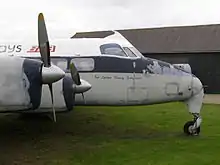 | De Havilland DH.114 Heron 2 of Cambrian Airways at Manchester Airport operating a scheduled service in April 1958 | |