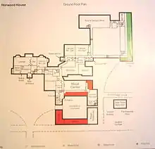 It was built for Frederick Arthur Denny (who had made his fortune in pork and bacon) and designed in a refined Jacobean style by the architects Blow and Billerey. It is built on the site of the former Old Horwood, a 300-year-old farmhouse previously known as Rectory House. Old Horwood was a building of late sixteenth-century construction, consisting of two storeys and an attic, with walls of timber and brick, which a Colonel Daucy occupied for a period and local folklore suggests that his ghost haunts the present house. It was extended in the later seventeenth century, and enlarged in the nineteenth century. When the estate was purchased by Denny it consisted of 482 acres (1.95 km2), two farms, eleven cottages, the village hall, parkland and woods. The purchase of the estate made the owner the Lay Rector or patron of St Nicholas' church, Little Horwood.[2] (In the Church of England, the legal right to appoint or recommend a parish priest is called an advowson, and its possessor is known as a patron.)