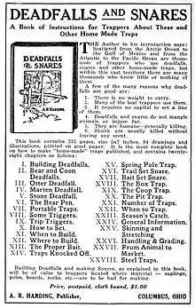 Deadfalls and Snares: A Book of Instruction for Trappers About These and Other Home-Made Traps is a 1907 book by A. R. Harding.