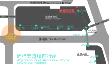 Map displaying the whereabouts of Chow Tsz-lok before the incident