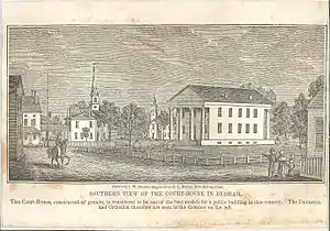 The editor of the local paper, Herman Mann, was called to the scene and reported the incident in the next edition of his weekly newspaper under the headline "MELANCHOLY CATASTROPHE!"[5] Fairbanks was too injured to be moved, and was left to recuperate at the Fales' home.[1] He did not attend Fales' funeral, but 2,000 others did, probably making it the largest crowd ever assembled in Dedham.[6] He was eventually removed by litter to the Norfolk County Jail where he remained until the grand jury indicted him on August 4, 1801.[7]