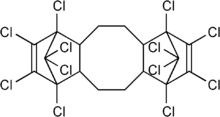 Dechlorane plus (abbrev. DDC-CO[1]) is a polychlorinated flame retardant produced by Oxychem. Its log P is 11.27±0.94.[2] It is produced by the Diels-Alder reaction of two equivalents of hexachlorocyclopentadiene with one equivalent of cyclooctadiene. The syn and anti isomer are formed in the approximate ratio of 1:3.[3][4]