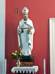 Declán of Ardmore (Old Irish: Declán mac Eircc; Irish: Deaglán, Deuglán; Latin: Declanus; died 5th century AD), also called Déclán, was an early Irish saint of the Déisi Muman, who was remembered for having converted the Déisi in the late 5th century and for having founded the monastery of Ardmore (Ard Mór) in what is now Co. Waterford.[1] The principal source for his life and cult is a Latin Life of the 12th century. Like Ailbe of Emly, Ciarán of Saigir and Abbán of Moyarney, Declán is presented as a Munster saint who preceded Saint Patrick in bringing Christianity to Ireland. He was regarded as a patron saint of the Déisi of East Munster.[1]