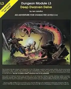 L3 Deep Dwarven Delve is a Fantasy Adventure Module or "module" for Advanced Dungeons & Dragons (1st edition).
