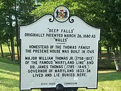 Deep Falls is a historic home located at Chaptico, St. Mary's County, Maryland, United States. It began as a one-story four-room frame house that was reportedly built in 1745. The house was apparently extensively remodeled at some time during the last two decades of the 18th century then again during the mid 19th century.[2] Deep Falls has always been in the ownership of the Thomas family, descendants of Governor James Thomas of Maryland and the famous Civil War spy Richard Thomas (Zarvona). The family is still in ownership of the property today.