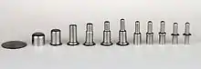 Deep drawing is a sheet metal forming process in which a sheet metal blank is radially drawn into a forming die by the mechanical action of a punch.[1] It is thus a shape transformation process with material retention. The process is considered "deep" drawing when the depth of the drawn part exceeds its diameter. This is achieved by redrawing the part through a series of dies. The flange region (sheet metal in the die shoulder area) experiences a radial drawing stress and a tangential compressive stress due to the material retention property. These compressive stresses (hoop stresses) result in flange wrinkles (wrinkles of the first order). Wrinkles can be prevented by using a blank holder, the function of which is to facilitate controlled material flow into the die radius.
