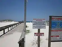 According to the satellite images, the spill directly affected 70,000 sq mi (180,000 km2) of ocean, which is comparable to the size of Oklahoma.[4][49] By early June 2010, oil had washed up on 125 mi (201 km) of Louisiana's coast and along the Mississippi, Florida, and Alabama coastlines.[50][51] Oil sludge appeared in the Intracoastal Waterway and on Pensacola Beach and the Gulf Islands National Seashore.[52] In late June, oil reached Gulf Park Estates, its first appearance in Mississippi.[53] In July, tar balls reached Grand Isle and the shores of Lake Pontchartrain.[54][55] In September a new wave of oil suddenly coated 16 mi (26 km) of Louisiana coastline and marshes west of the Mississippi River in Plaquemines Parish.[56] In October, weathered oil reached Texas.[57] As of July 2011, about 491 mi (790 km) of coastline in Louisiana, Mississippi, Alabama and Florida were contaminated by oil and a total of 1,074 mi (1,728 km) had been oiled since the spill began.[58] As of December 2012, 339 mi (546 km) of coastline remain subject to evaluation and/or cleanup operations.[59] The reported 3.19 million barrels of spilled oil was not the only affect of this disaster. There was a report detailing the release of thousands of tons of hydrocarbon gases (HC) into the atmosphere.[60]