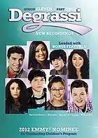 Degrassi was nominated for a GLAAD Media Award in the Best Drama Series category, alongside Pretty Little Liars, Shameless, Torchwood: Miracle Day, and winner Grey's Anatomy.[6][7][8] These awards, honour works that fairly and accurately represent the LGBT community and issues. At the 2012 Young Artist Awards, both Cristine Prosperi and A.J. Saudin won awards in the Lead Young Actress and Recurring Young Actor in the Best Performance in a TV Series categories respectively, both sharing with another in their category due to ties.[9] It also received a nomination for a Primetime Emmy Award in the outstanding children's program category, alongside Good Luck Charlie, iCarly, Victorious, and winner Wizards of Waverly Place.[10] At the 1st Canadian Screen Awards Degrassi won the award for "Best Children’s or Youth Fiction Program or Series".[11] In addition, Charlotte Arnold and Jahmil French were both nominated for "Best Performance in a Children's or Youth Program or Series" for their performances in "U Don't Know" Part Two and "Smash into You" respectively, also nominated were two performances from season 12,[12] and winner, and fellow Degrassi actress, Melinda Shankar for her performance in How to be Indie.[11]