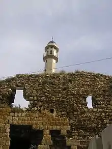 Sa'd el-Omar is credited with the construction of the village fort's high inner walls, which at the time had 12 towers. Zahir is credited with the construction of the outer walls, while Ali al-Zahir had two towers built off of the eastern and western sides of the fort. Both of the latter towers were separated from the fortress and were meant to serve as additional protection in the event of a siege.[13] The Zaydani mosque of Deir Hanna, before its destruction in 1776, had been the "most famous of all the Zaydani's buildings in the Galilee", according to historian Moshe Sharon.[14] Local tradition claims that the mosque was built on top of an older Crusader-era church and that Jezzar Pasha had been so impressed by Sa'd's mosque, that he copied its design for his namesake mosque in Acre.[14]