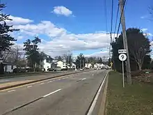 Delaware Route 9A (DE 9A) is a two- to four-lane road in Wilmington, Delaware that serves as the primary access route to the Port of Wilmington as well as provide access to I-495. The official designation of the route runs 0.78 miles (1.26 km) along Terminal Avenue between DE 9 and the Port of Wilmington, interchanging with I-495. Signage has the route continuing north along Christiana Avenue to an intersection with US 13 and DE 9 for a total length of 2.0 mi (3.2 km).[1][26] Christiana Avenue originally became a state highway by 1924, serving as part of US 40 that connected to a ferry across the Delaware River to Penns Grove, New Jersey in 1926.[12][27][28] US 40 was removed from this road by 1931 and it later became part of DE 48 by 1936.[2][29] DE 48 was subsequently removed by 1952 following the discontinuance of the ferry in 1949.[30][31] DE 9A was designated by 1971.[21]