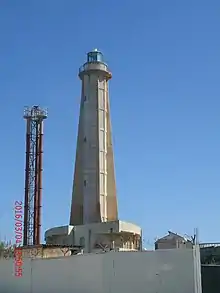 the concrete lighthouse built in 2010 (right) next to the metal tower built in 2004 (left)