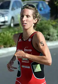 ![]() Delphine Py representing the winning club Beauvais at the Grand Final in La Baule, 2009. | |