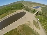 Land subsidence is prevalent throughout the San Joaquin Valley, but was unrecognized prior to the construction of the canal. After construction, discrepancies in elevation were believed to be caused by earthquake.[8] Post construction years, the southern 30–40 miles of the canal exceeded subsidence of 6 feet.[8] Nearly two-thirds of the canal has been impacted by subsidence, over 20 miles of the concrete lined canal, and all the earth lined portion. By 1966, 35 miles demonstrated a drop of 1 feet, 3 feet elevation drop in 15 mile stretch, 5 foot decrease in a 5-mile portion, and 2 feet of the canal demonstrated a drop of 6 feet. Land subsidence in the region is due to constant over-drafting of underground water. Another key factor is due to the San Joaquin Valley's geomorphological structure, having young continental, unconsolidated sandy-silty-clayish soils, resting on old unconsolidated marine beds.[8]