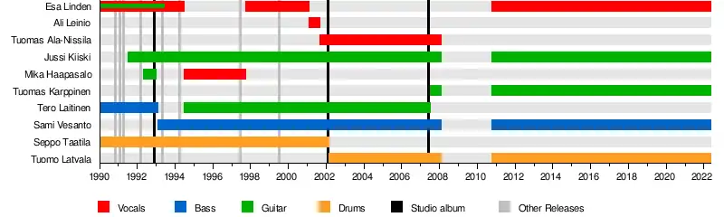 - Esa Lindén - vocals (1990-1994, 1997-2001, 2010-present), guitar (1990-1993)