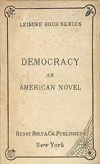 Democracy: An American Novel is a political novel written by Henry Brooks Adams and published anonymously in 1880. Only after the writer's death in 1918 did his publisher reveal Adams's authorship although, upon publication, the novel had immediately become popular. Contemporaneous conjecture placed the book under the joint authorship of Clarence King, John Hay and Henry Adams and their spouses who lived side by side on H street in Washington, D.C. and were collectively sometimes called "the Five of Hearts."