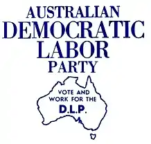 The Democratic Labour Party (DLP), formerly the Democratic Labor Party, is an Australian political party. It broke off from the Australian Labor Party (ALP) as a result of the 1955 ALP split, originally under the name Australian Labor Party (Anti-Communist), and was renamed the Democratic Labor Party in 1957. In 1962, the Queensland Labor Party, a breakaway party of the Queensland branch of the Australian Labor Party, became the Queensland branch of the DLP.[6]