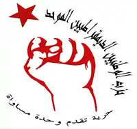 The Democratic Patriots' Unified Party (Arabic: حزب الوطنيين الديمقراطيين الموحد), formerly the Democratic Patriots' Movement, is a communist party in Tunisia.[2] Established in 1981, the movement was only legalised in 2011 after the Tunisian Revolution. The movement primarily advocates a parliamentary system, the balanced development of the peasantry and light industry, and campaigns against the exploitation of the working classes of Tunisia. In the 2011 elections, they won one seat in the Constituent Assembly of Tunisia, Mongi Rahoui from Jendouba Constituency.[3] In October 2012, the party formed a leftist coalition, the Popular Front, with the Workers' Party, the Tunisian Green Party, the Movement of Socialist Democrats, the Tunisian Ba'ath Movement (an Iraqi-led branch of the Ba'ath Party), and other Progressive parties. The Movement is strongly anti-Islamist.