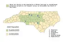 North Carolina has three major Metropolitan Combined Statistical Areas with populations of more than 1 million[7]