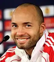 De Zeeuw usually played as a defensive midfielder and in the national team, he had to compete with the likes of Mark van Bommel, Orlando Engelaar, and Nigel de Jong in that position.[179] De Zeeuw made his first start for Netherlands, starting a match and played 58 minutes before being substituted, in a friendly against South Korea on 2 June 2007.[180] In a match against Bulgaria on 8 September 2007, he started the whole game and was a key player throughout the match, as Oranje won 2–0.[181] De Zeeuw started in the remaining UEFA Euro 2008 qualifying matches, as he helped Netherlands qualify for the UEFA Euro 2008.[182] In March 2008, de Zeeuw said in an interview with Algemeen Dagblad that he hoped to make a good impression during UEFA Euro 2008 to earn a transfer to another club.[183] For the first six months of 2008, de Zeeuw continued to feature regularly for the national side, playing in the midfield position.[184] Two months later, he was included in the Oranje's provisional squad.[185] De Zeeuw made the 23 men squad ahead of the tournament despite suffering setback to his injury.[186] However, his appearance was limited to a single appearance in the group stage against Romania.[187]