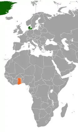 Denmark– Ghana relations refers to the current and historical relations between Denmark and Ghana. Denmark has an embassy in Accra[1] and Ghana has an embassy in Copenhagen.[2] Relations date back to 1660, when Danes settled the Gold Coast.[3] Bilateral relations are described as warm and strong.[4] Denmark has assisted Ghana with development since 1958.[5]