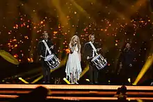 To ensure fair ticket distribution in the semifinals, the Eurovision Reference Group decided on 7 November 2012 that Denmark would compete in the first semi-final on 14 May.[13] In the first semifinal, the producers of the show decided that Denmark would perform 5th, following Croatia and preceding Russia.[14] On stage, Emmelie de Forest was joined by two drummers: Morten Specht Larsen and Jacob Baagøe Thomsen, and by three backing singers: Anne Murillo, Heidi Degn and Anders Øhrstrøm.[15]