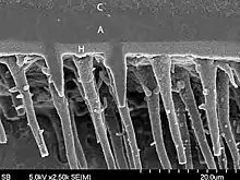 The hybrid layer is hydrophobic, acid resistant and tough. The quality of hybrid layer formed decides the strength of resin dentin interface. When the hybrid layer becomes thicker and more uniform, the bond strength is better.[4]