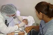 Dentistry for babies is a branch of Pediatric dentistry related to the dental treatment provided to children from birth to around 36 months of age, aiming to maintain or re-establish a good oral health status, at the same time as it creates a positive attitude of parents and children about Dentistry.[1][2] Although concerns about dental treatment directed to babies have been reported at the beginning of the twentieth century, only recently the dental community started to focus on this area of Dentistry, due to the high dental caries (decay) prevalence observed in young children. The first setting for providing dental care exclusively to babies started in 1986, at Londrina's State University (Brazil),[3] changing the concept from early treatment of carious lesions and their consequences to early educative-preventive attention. These concepts were disseminated through the entire country introducing new clinics with a similar philosophy such as the Baby Clinic of Araçatuba Dental School, São Paulo State University (UNESP),[4] and also abroad.[5]