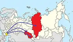 ![]() Map of the deportation of people from Kalmykia to Siberia in 1943 Kalmykia | |