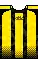 Deportivo Táchira's shirt has black and yellow vertical stripes, with black shorts and socks.