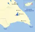 Deryneia (Greek: Δερύνεια; Turkish: Derinya) is a large village in the island of Cyprus. It is located at the east side of the island, 2 km (1 mi) south of the city of Famagusta. The population of the village is 5,758 (October 2011 census) and it consists of a municipality since 1994. The current mayor is Andros Karayiannis. Since the 1974 Turkish invasion of Cyprus, around 75% of the village terrain is in Northern Cyprus. The village is 12 kilometers from the famous resort of Ayia Napa. The "Ghost Town" of Varosha can be clearly viewed from the roof of the Cultural Centre, as can the craters from shells fired during the invasion in the field opposite.