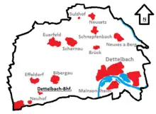Location of Dettelbach Bahnhof (bold) in the Dettelbach municipal area