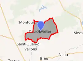 Deux-Évailles (French pronunciation: [dø.z‿evaj]) is a former commune in the Mayenne department in north-western France. On 1 January 2019 the commune was unified with Montsûrs-Saint-Céneré, Montourtier and Saint-Ouën-des-Vallons, and the new municipality took the name of Montsûrs.[2]