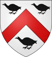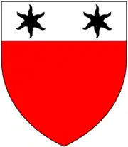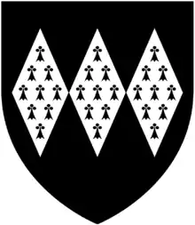 Argent, on a chief sable three cinquefoils of the field | Downton[lower-alpha 3] |