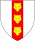 Per chevron azure and ermine in chief two buck's heads cabossed or | Arscott, Holsworthy;[5] Dunsland, Bradford; Tetcott; Annery, Monkleigh |