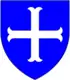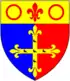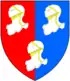 Azure, three trefoils slipped argent on a chief indented gules two annulets or | Blackdon, Ashwater (?) |