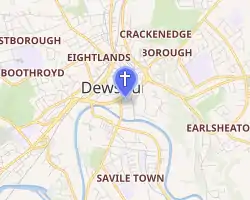 Dewsbury Minster or All Saints' Church is the minster church of Dewsbury, Kirklees, West Yorkshire, England. It dates from the 13th century and was rebuilt in 1895. It is situated on Vicarage Road and Church Street in the centre of the town. It became a minster church in 1994. In 1949 it became a Grade II* listed church.[1] Dewsbury Minster is one of three churches in the county of West Yorkshire to be given the honorific title of "minster". The other two are Halifax Minster and Leeds Minster. Both in the town of Halifax and the city of Leeds.