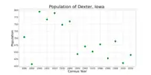 Dexter is a city in Dallas County, Iowa, United States. The population was 640 at the time of the 2020 census.[2] It is part of the Des Moines–West Des Moines Metropolitan Statistical Area.
