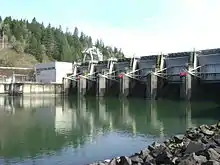 Dexter Reservoir (also known as Dexter Lake) is a reservoir in Lane County, in the U.S. state of Oregon.[2] It is about 16 miles (26 km) southeast of Eugene on the Middle Fork Willamette River, immediately downriver from Lookout Point Lake, another reservoir. The communities of Dexter and Lowell are near the lake. Oregon Route 58 follows the lake's southern shore, while Pengra Road parallels the lake's northern shore as far east as Lowell.[4]