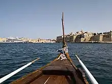 The dgħajsa tal-pass is a traditional water taxi from Malta. It is often simply referred to as the dgħajsa (Maltese pronunciation: [dɐɪsɐ], pl. dgħajjes [dɐɪjɛs]),[1] but this word refers to any type of boat in the Maltese language.[2] The boat developed in the 17th century, and was extensively used to ferry passengers in the Grand Harbour and Marsamxett Harbour between the 18th and 20th centuries. Their use declined in the late 20th century, and today few dgħajjes remain in operation ferrying tourists around the harbours. Variants of the boats are still used extensively in rowing regattas held twice a year.