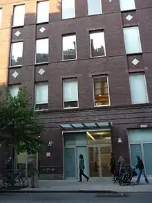 In November 2009 Dia's Director, Philippe Vergne, announced plans to reopen in Chelsea on West 22nd Street.[21] In 2011, after years of negotiations, Dia bought the former Alcamo Marble building at 541 West 22nd Street, located between its former space at No. 545 and its existing six-story building at No. 535, for $11.5 million.[22] Inside, these three existing brick buildings will be woven together to create three interconnected galleries on the ground floor. According to plans, the new Dia, designed by architect Roger Duffy, will include 15,670 square feet (1,456 square metres) of gallery space and 3,625 square feet (336.8 square metres) of rooftop for outdoor exhibitions like Dan Graham's Rooftop Urban Park Project (1991), an architectural pavilion fashioned from two-way mirrored glass that was originally installed on the roof of No. 548.[22]